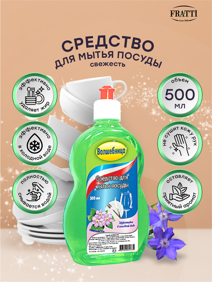 Средство для мытья посуды волшебница Свежесть 500 мл. информация: