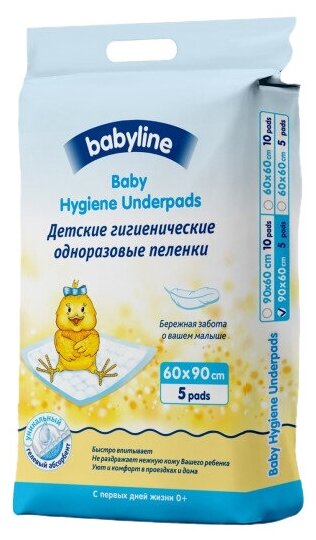 Пеленки одноразовые детские Babyline, 90х60 см., 5 шт. информация: