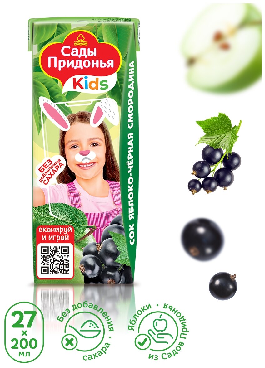 Спайка Сок яблоко-черная смородина Сады Придонья 0,2 л, 27 штук информация: