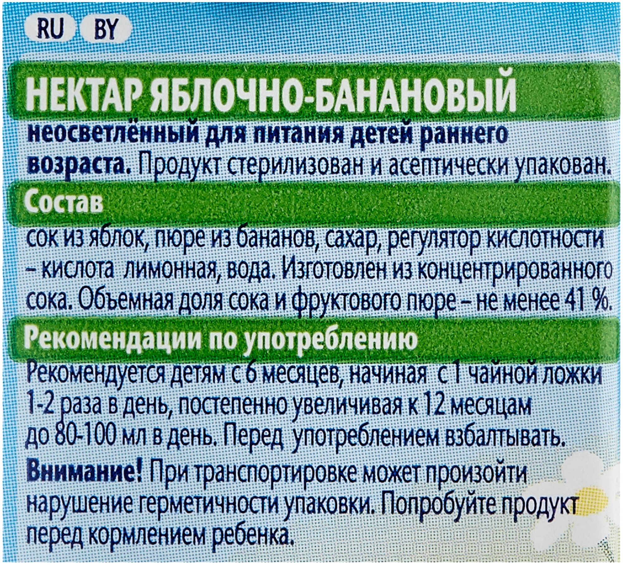 Малышам Нектар Малышам яблоко-банан 0,2л информация: