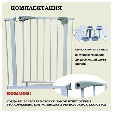 Барьер-калитка Baby Safe для дверного проема (75-85 cm) бело-серый металл информация: