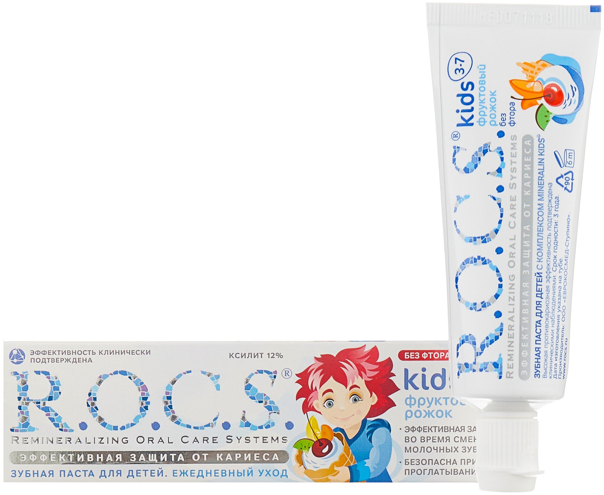 10 цен на R.O.C.S. Детская зубная паста Фруктовый рожок без фтора, 45 г, R.O.C.S.