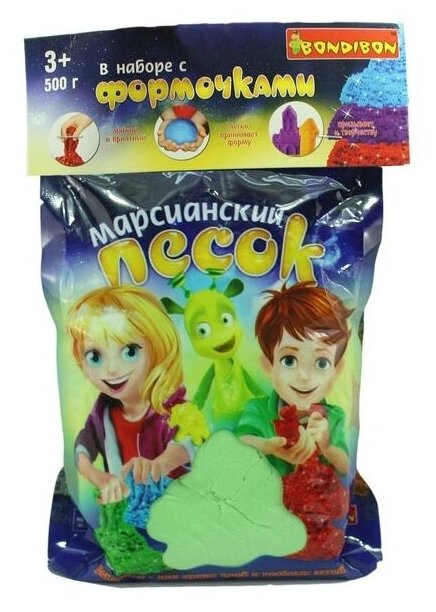 Отзывы на Марсианский песок Bondibon 500 г, зеленый, 10 формочек (Динозаврики) (ВВ1727)