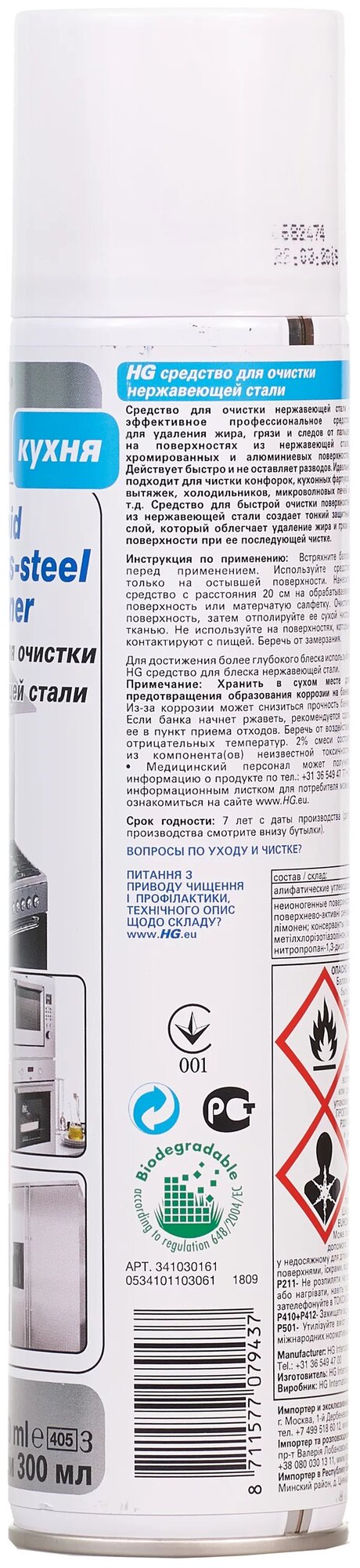 HG Аэрозольное средство для очистки нержавеющей стали 300 мл