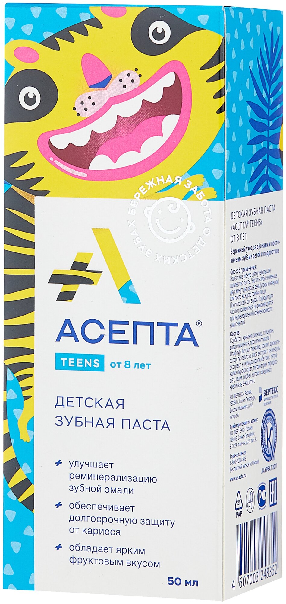 Асепта Зубная паста для детей TEENS, с 8 лет, 50 мл, асепта информация: