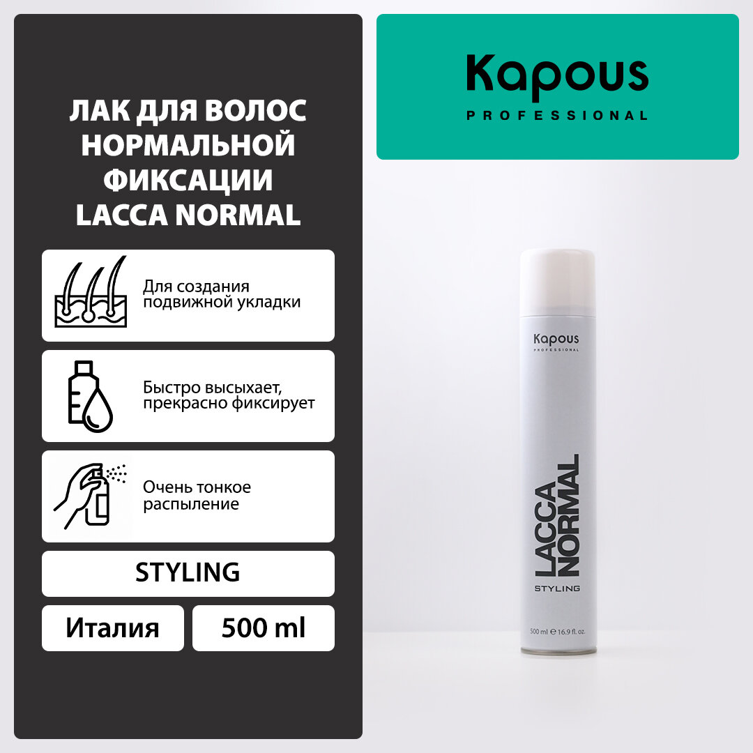 Kapous Лак для волос аэрозольный (без фреона) нормальной фиксации Lacca Normal серии Styling, 500 мл