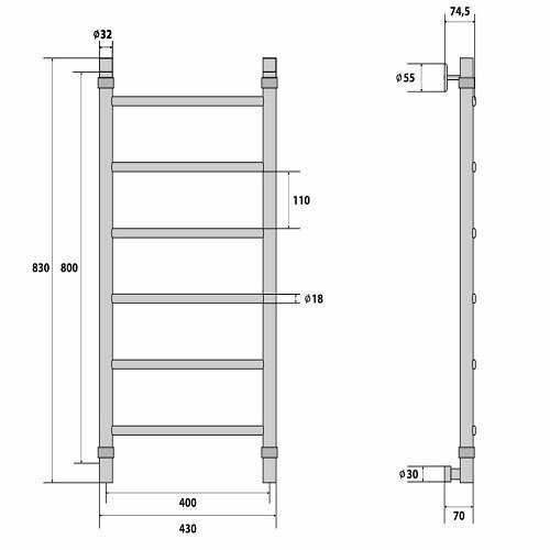 Полотенцесушитель водяной Energy Classic 800х400 (Классик 80/40)