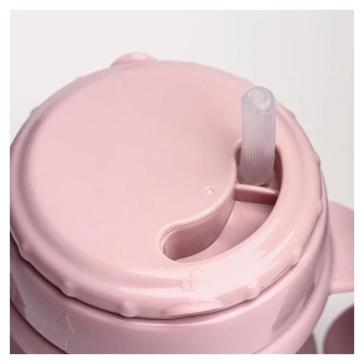 Термос-поильник детский с мягким носиком Nuvita (термопоильник - непроливайка с ремешком), 350 мл, розовый