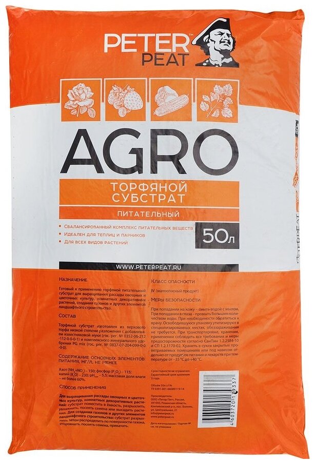 Субстрат торфяной PGMix, 50л, линия агро информация: