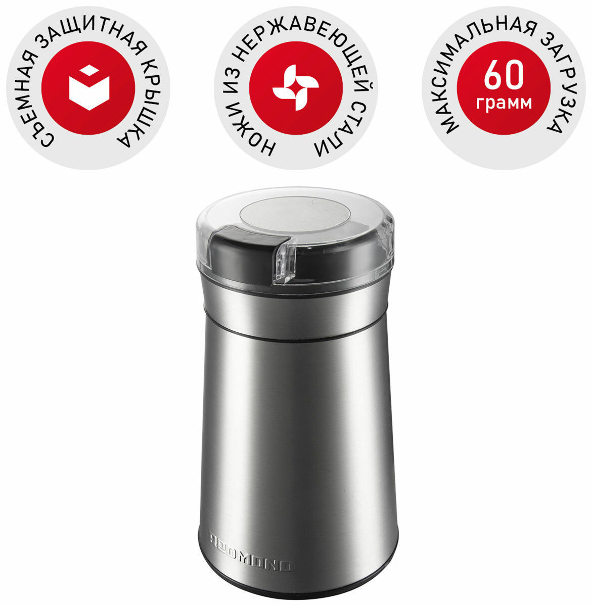 Кофемолка РЕДМОНД CG805 (серебристый), для кофе, специй, орехов, ножи и емкость из стали