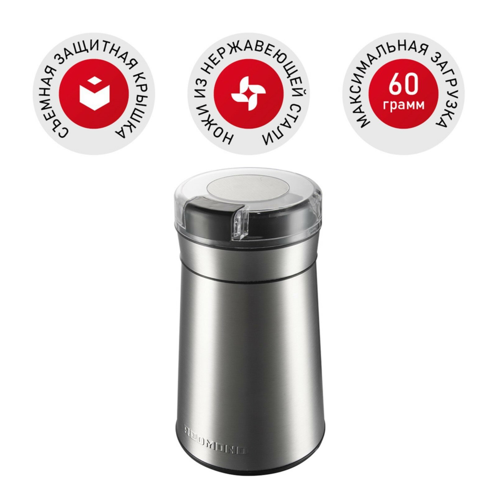 Кофемолка RCG-M1608, электрическая, ножевая, 160 Вт, 60 г, серебристая информация: