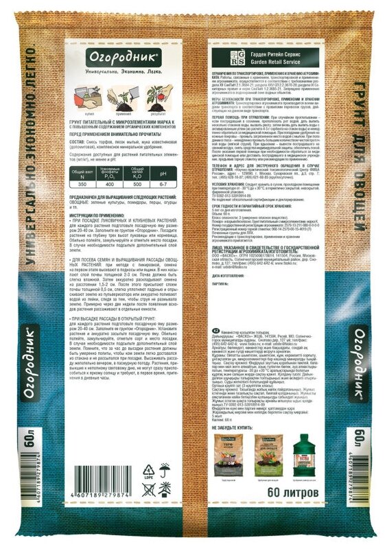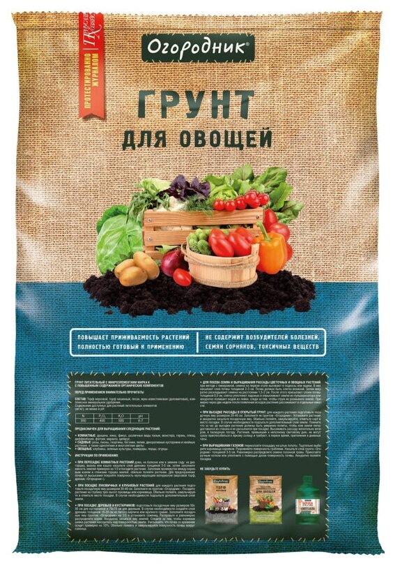 Грунт для овощей Огородник 60 л Of000115487 информация: