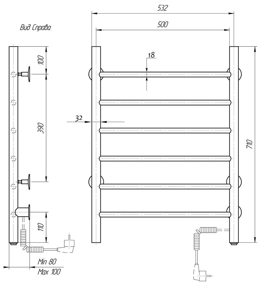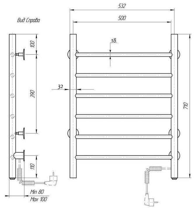 Полотенцесушитель электрический Маргроид В10 30х80, таймер, черный матовый