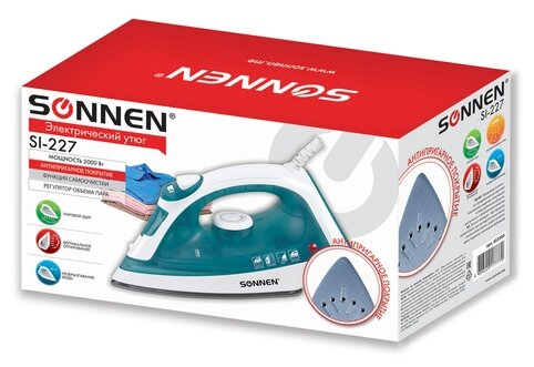 Утюг SONNEN SI-227, 2000 Вт, антипригарное покрытие, бирюзовый/белый, 453505 информация: