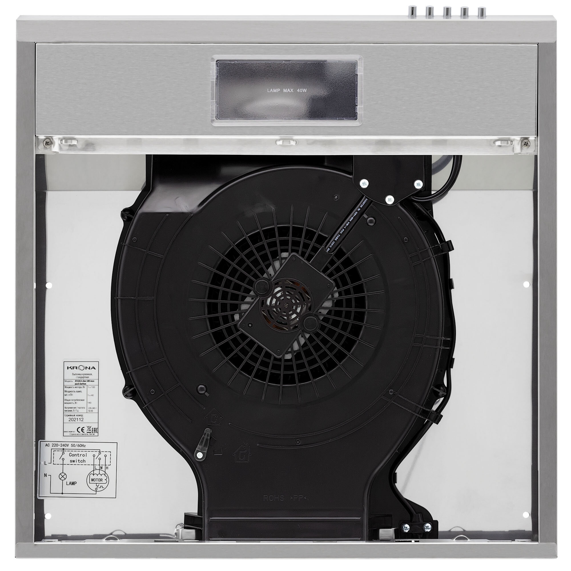 Вытяжка козырьковая Krona Jessica slim PB 500, управление кнопочное, нержавеющая сталь [00020264] 9 971 ₽