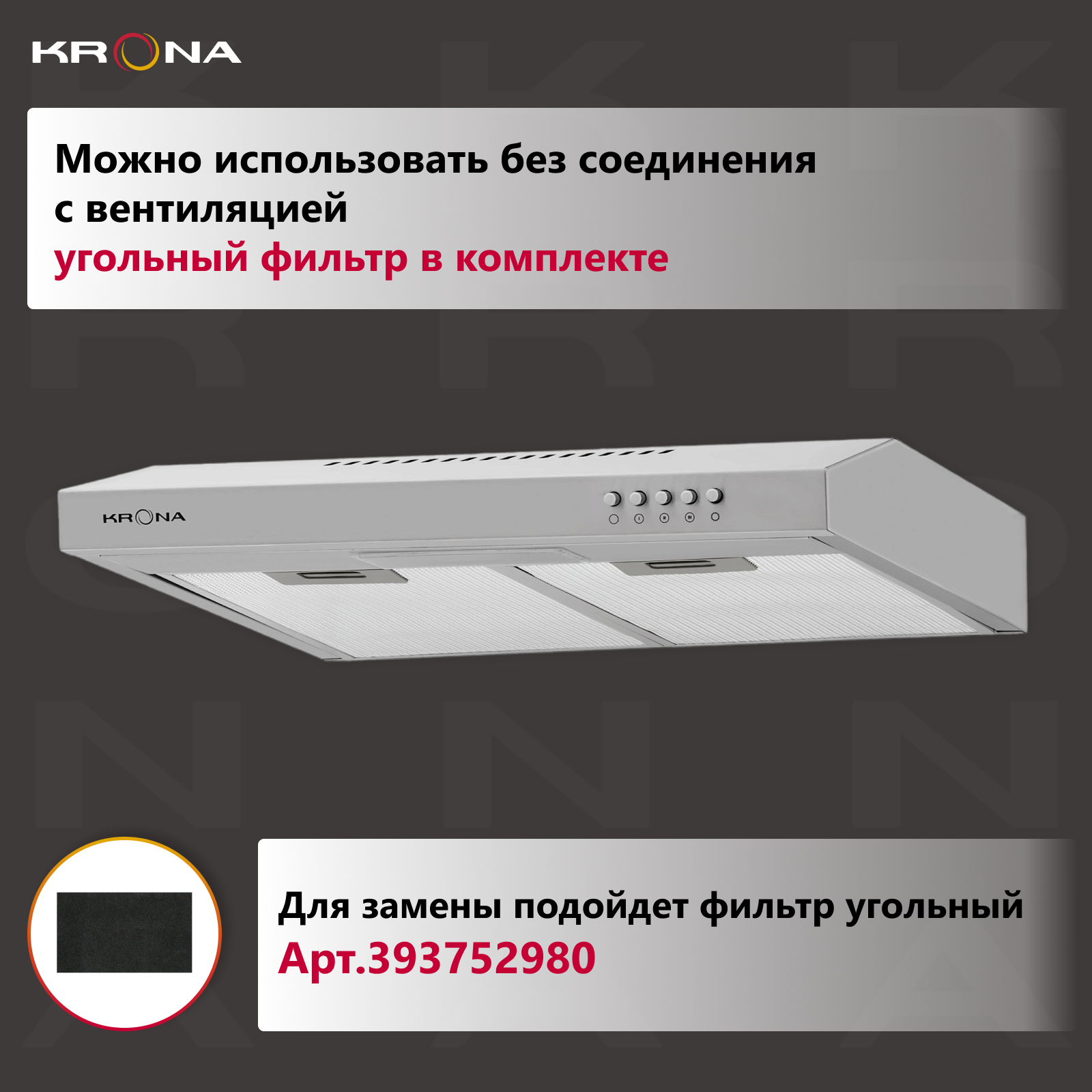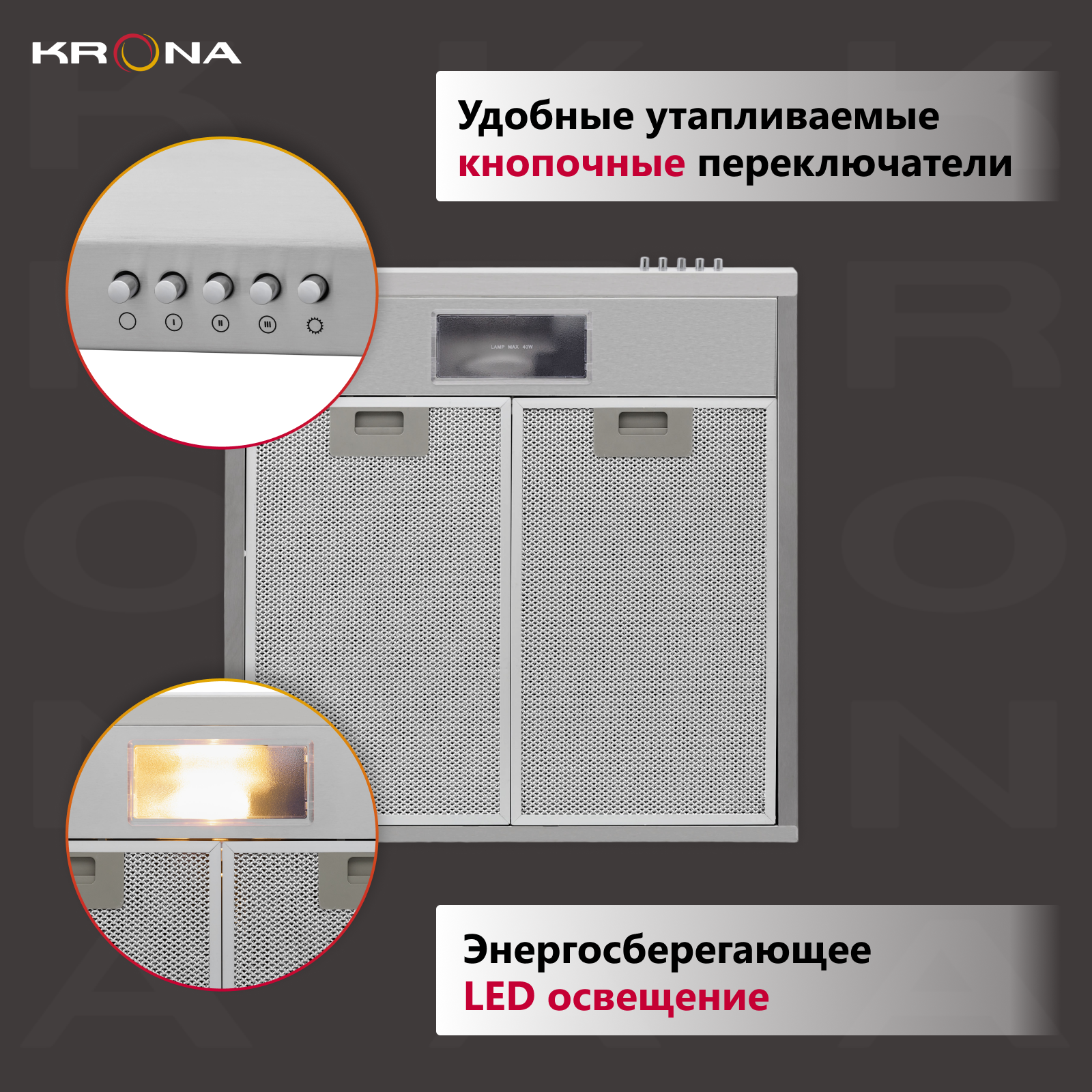 Подвесная вытяжка Krona JESSICA slim 500 inox push button информация:
