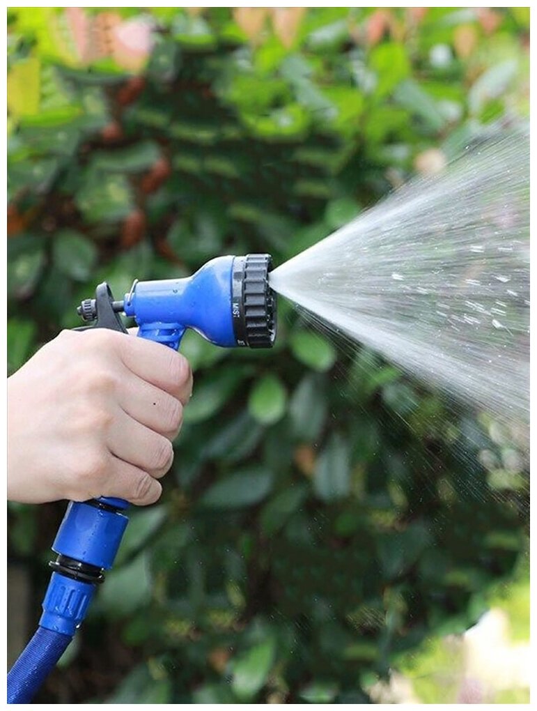 Растягивающийся садовый шланг для полива с насадкой-распылителем Magic Hose (Синий) 7.5 метров
