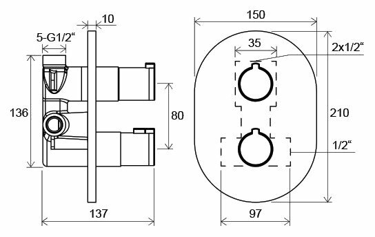 Cмеситель термостатический скрытого монтажа Ravak Chrome CR 063.00 с переключателем