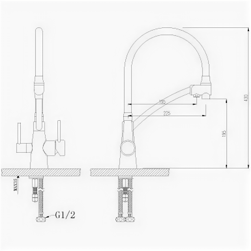 | Длина излива | 225 мм |