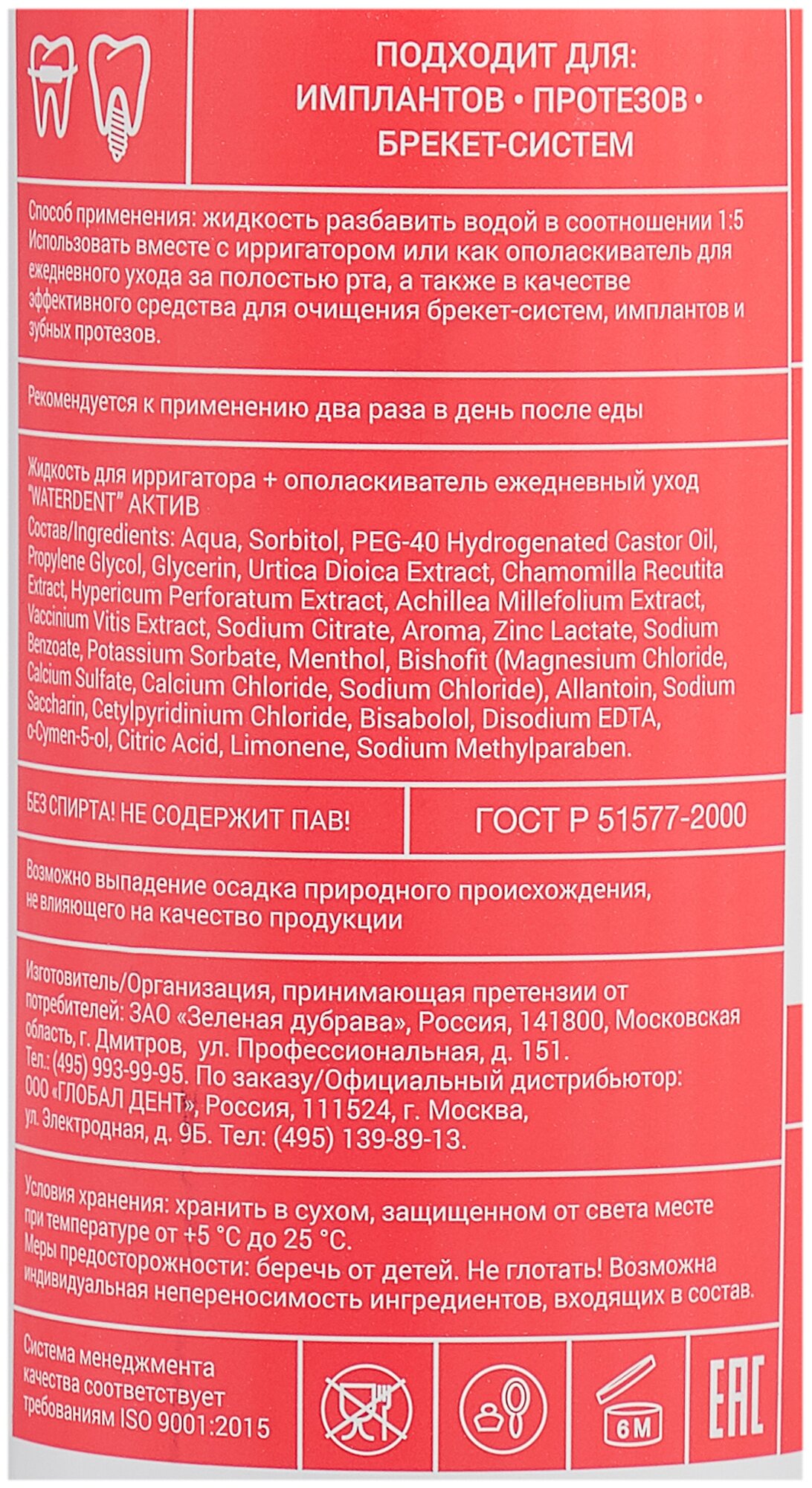 Жидкость для ирригатора WATERDENT Актив 500 мл информация: