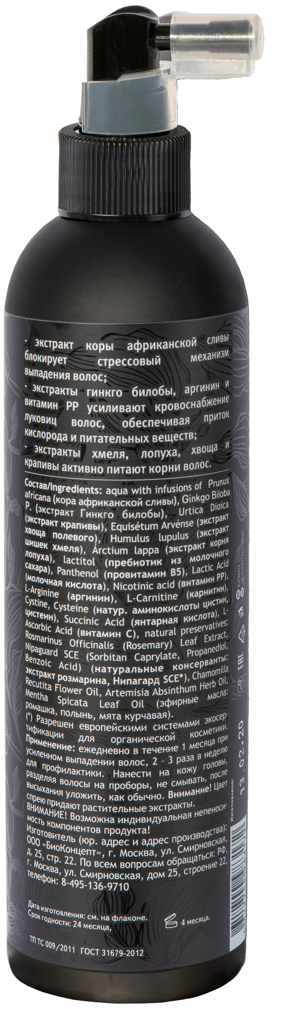 NanoOrganic Спрей от выпадения волос для кожи головы, 270 мл информация: