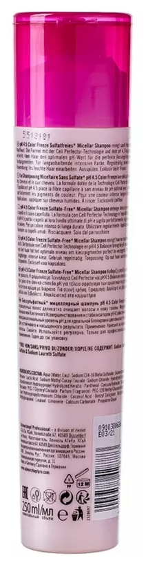 BC pH 4.5 Color Freeze Мицеллярный Бессульфатный Шампунь 250 мл SULFATE-FREE