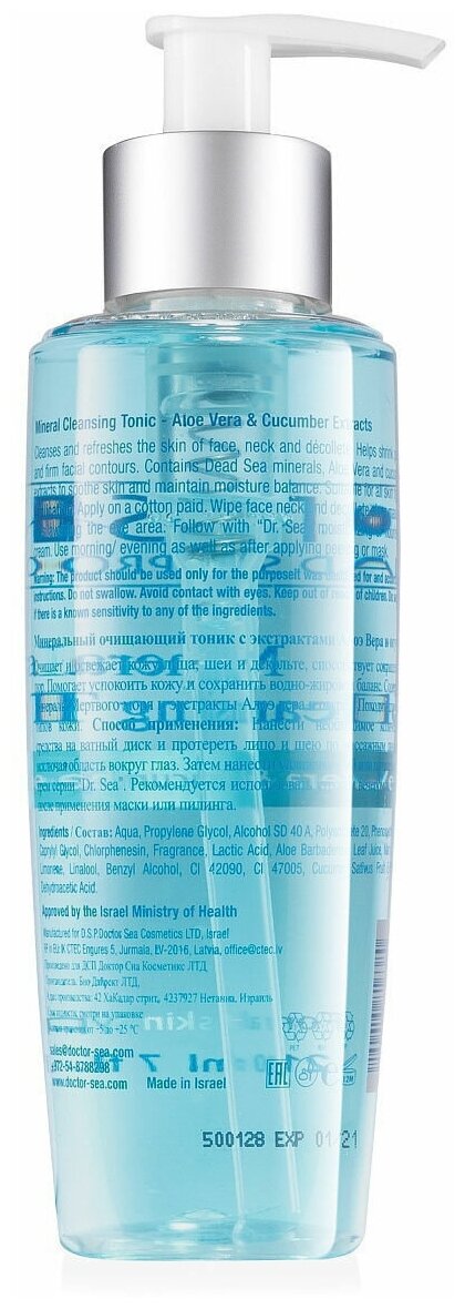 Dr. Sea Минеральный очищающий тоник с экстрактами Алоэ Вера и огурца, 210мл. информация: