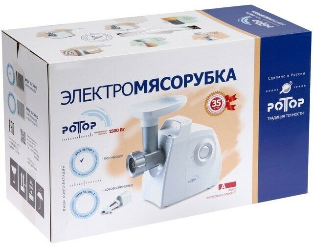 Мясорубка ротор Макси ЭМШ 35/300-2 + соковыжималка, 1500 Вт, белый