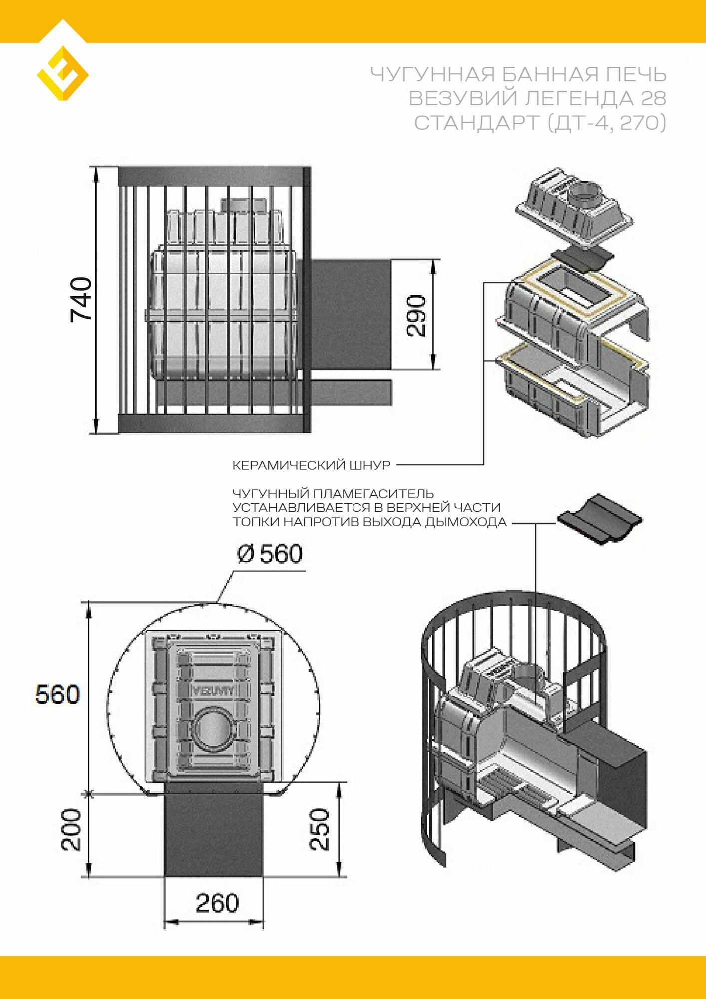 Банная печь везувий Легенда Стандарт 28 (ДТ-4) информация: