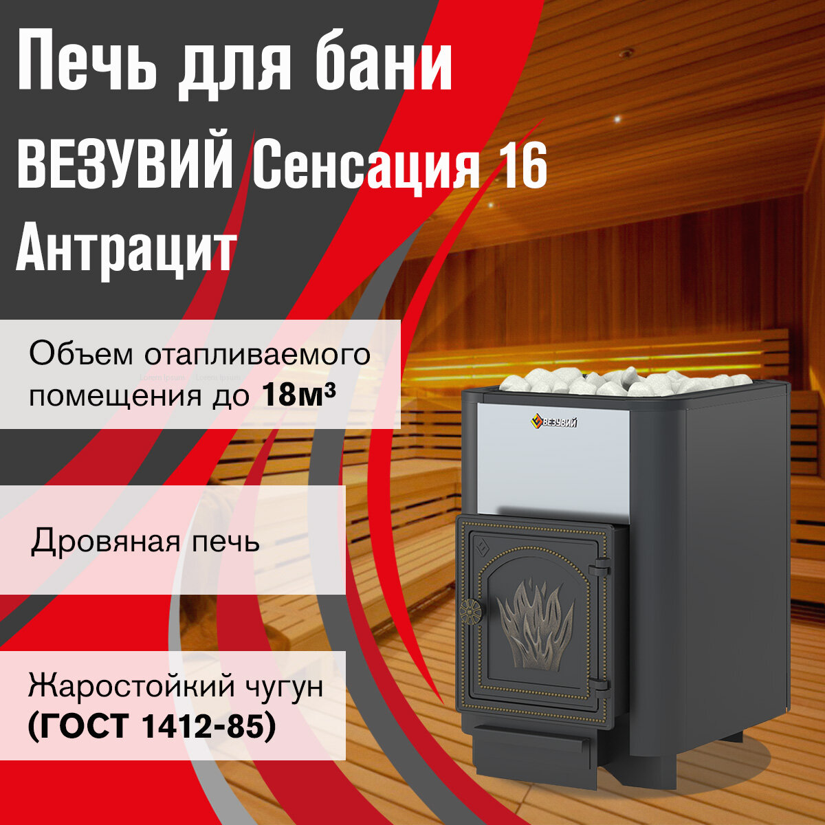 Банная печь везувий Сенсация 16 Антрацит (ДТ-4) без выноса информация: