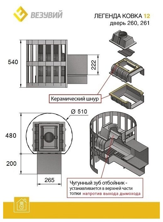 Везувий Чугунная печь для бани Везувий Легенда Стандарт 12 (Дверь: ДТ-3)(- -)