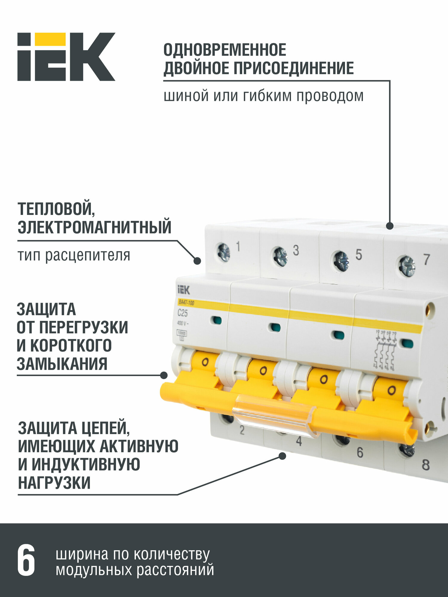 Выключатель автоматический ВА47-100 4Р 25А 10кА С IEK информация: