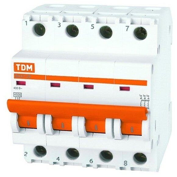 Автоматический выключатель ВА47-29 4Р 8А 4,5кА х-ка В TDM (1 шт.)