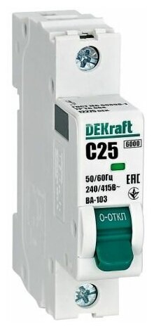 Автоматический выключатель Dekraft ВА-103 1P C25 A 6 кА