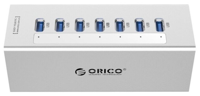 USB-концентратор ORICO A3H7, разъемов: 7, серебристый