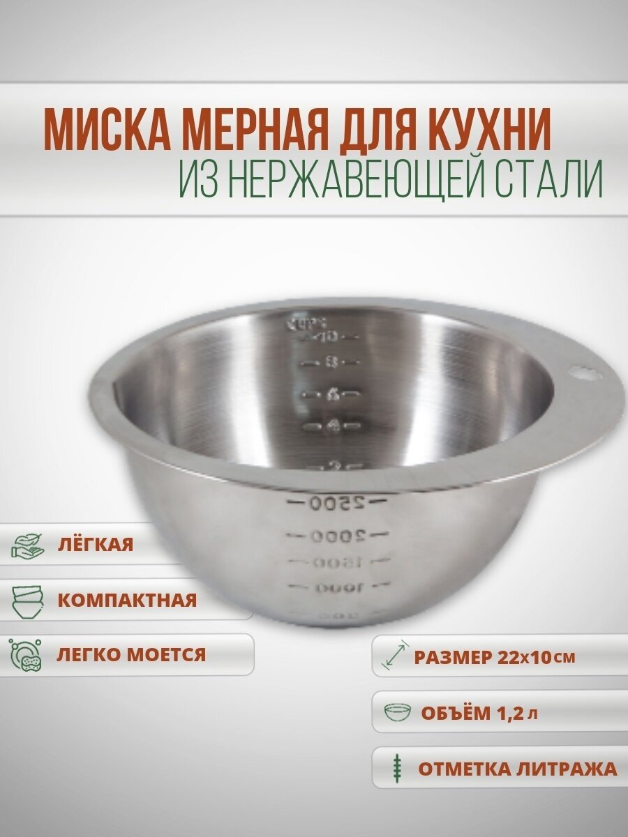 10 цен на Миска мерная MB-1200, объем 1200 мл, нерж. сталь 0,5 мм