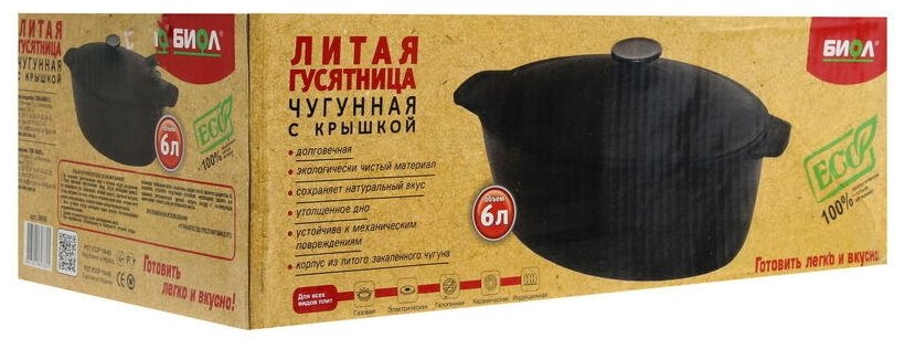 10 цен на Гусятница чугунная с крышкой, Биол 0606, 6 л