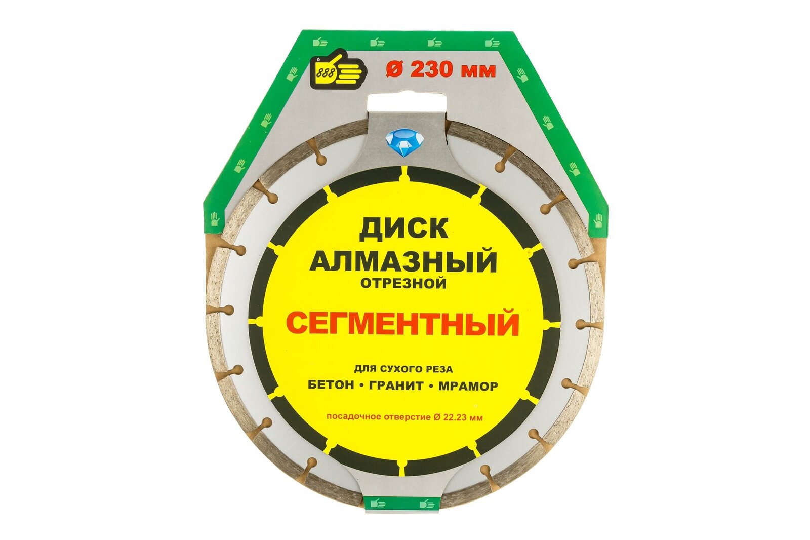 Диск алмазный "сегментный" для сухого реза керамогранита, гранита, мрамора 230х2,4х22 "888" информация: