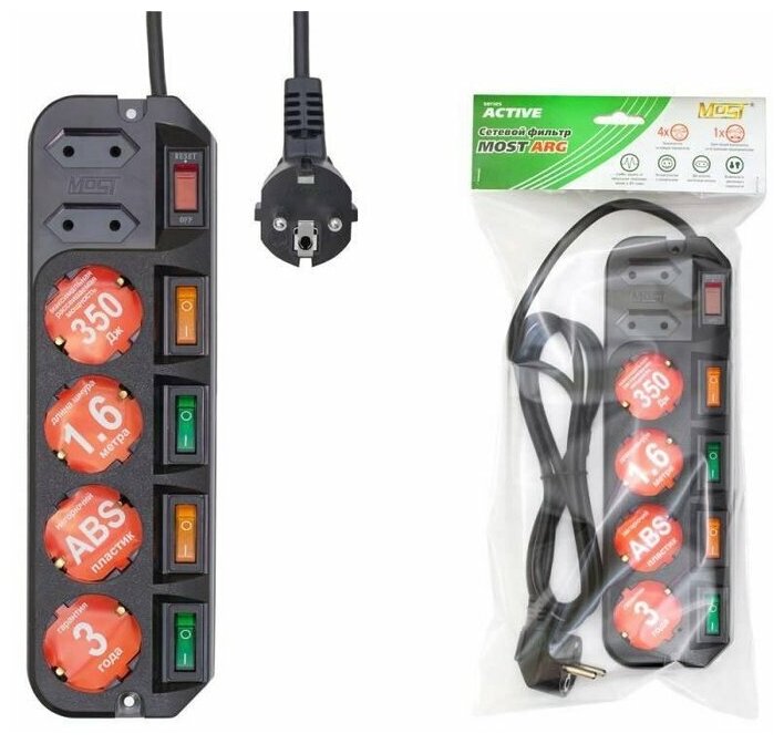 Сетевой фильтр Most ARG, 1.6м, черный [arg-ч 1,6] 1 149 ₽