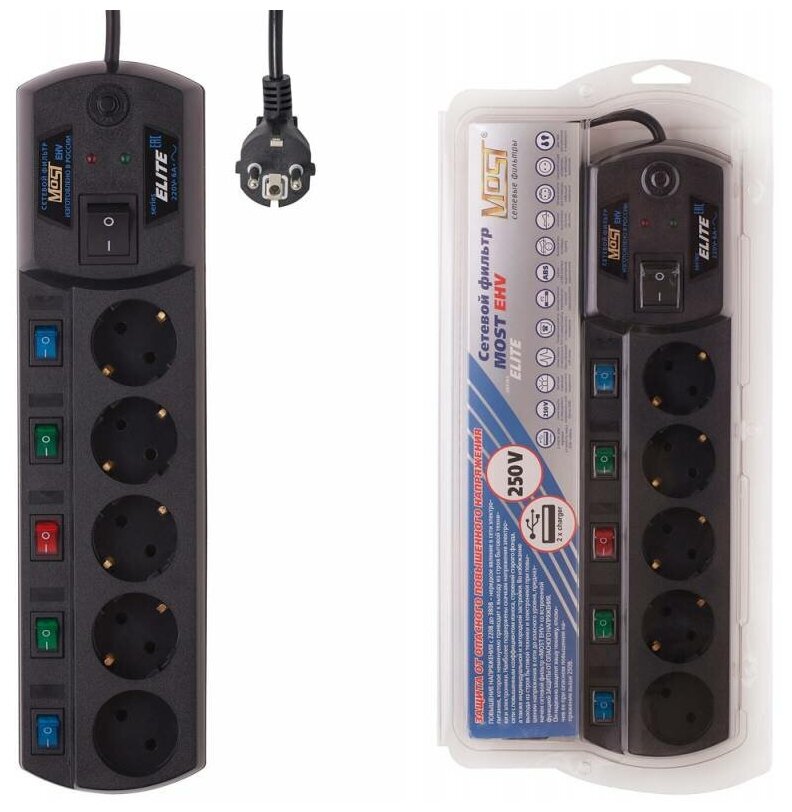 10 цен на Сетевой фильтр Most EHV 5м (5 розеток) черный (коробка)