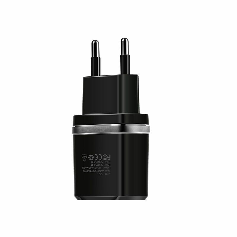 Hoco Сетевое зарядное устройство Hoco C12, 2 USB - 2.4 А, кабель Lightning 1 м, черный