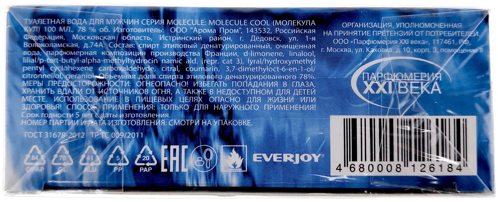 Парфюмерия XXI века MOLECULE Cool/Молекула Кул туалетная вода мужская 100 мл информация: