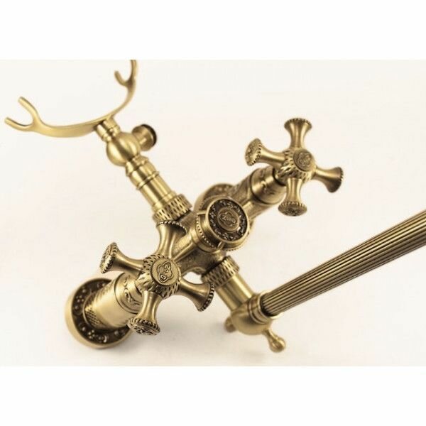 Смеситель Zorg Antic A 7001WDN-BR для ванны с душем, латунь бронза, ретро, с орнаментом, вентильный, длинный излив 32 см