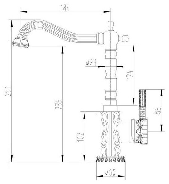 Смеситель для кухни ZorG A 109K-BR, латунь бронзовый, ретро с орнаментом, однорычажный, защита от брызг