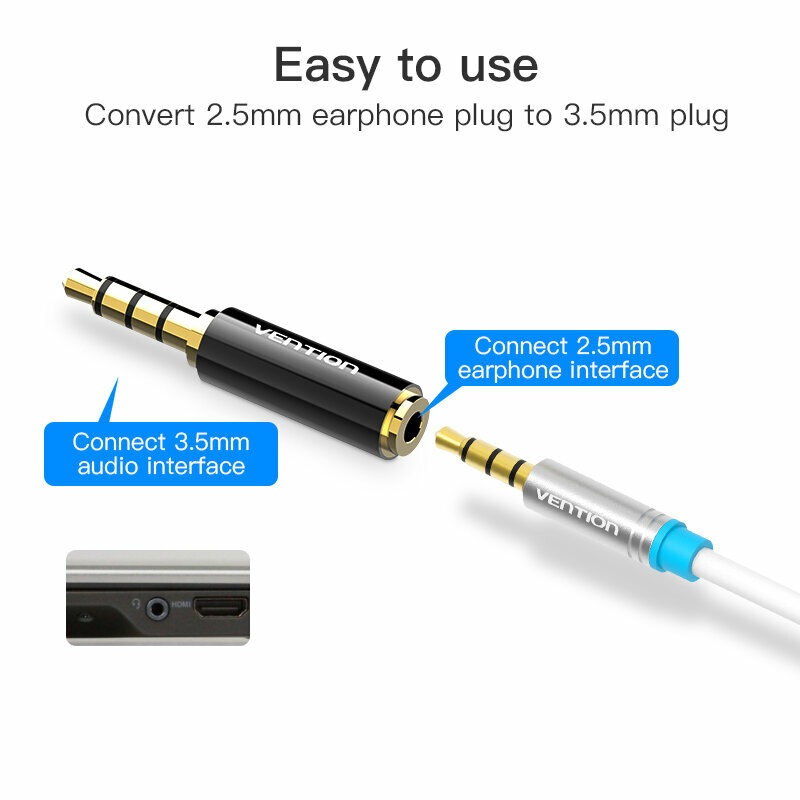 Переходник Vention micro jack 2.5 mm (f) - mini jack 3.5 mm (m) (BFBB0)