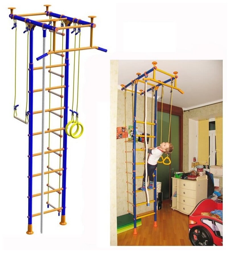 10 цен на ДСК для дома "Веселый Непоседа" MASTER Т-образный, синий-желтый, турник с широким хватом, ступени металл