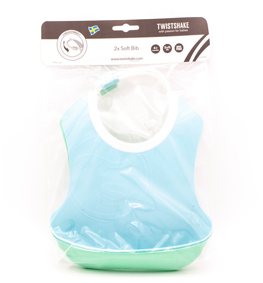 Отзывы на Детский нагрудник Twistshake (Bib) в наборе из 2 шт. Пастельный синий и зелёный (Pastel Blue Green). Возраст 4+m.