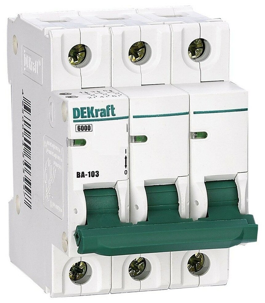 Автоматический выключатель Dekraft BA-103 (12301DEK) 3P 6А тип C 6 кА 230-400 В на DIN-рейку 1 372 ₽