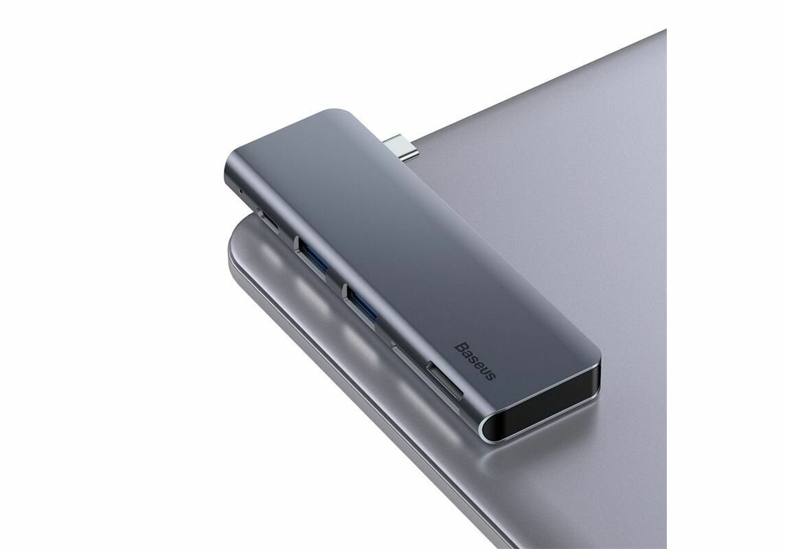 Адаптер для MacBook Baseus CAHUB-K0G, Harmonica 5in1 HUB Adapter (USB3.0 *2, SD*1, TF*1, PD*1) серый