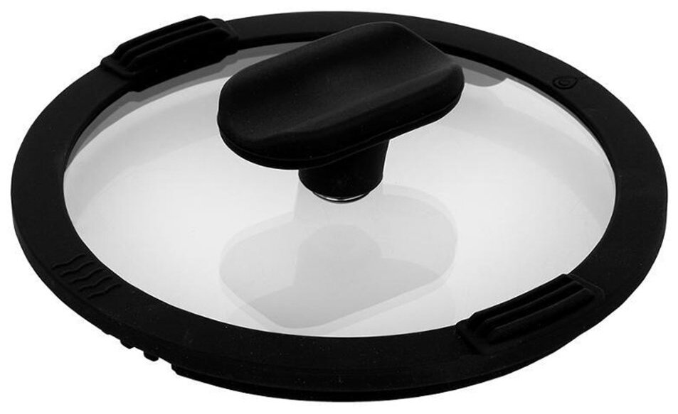 Стеклянная крышка со сливом с силиконовыми ободом и ручкой D 26